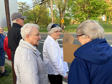 Finally, on April 5th, a national "Hands Off" day of protest was announced. Over 1300 such rally points were noted to have occurred. To my knowledge, New Jersey had 25 such rallies. Our Sisters participated in the Galloway, South Jersey and the Morristown, North Jersey rallies.